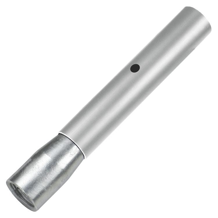 Expand the use of your tools with this adapter! All your concrete tools can use the same threaded bull float handle with this adapter. This tool allows finishers to use threaded handles with button bull float bracket assemblies. Or combine lightweight 1-3/8" diameter button bull float handle with thread handles. A strong female threaded end creates a strong attachment to other threaded handles. The threaded end is secured to a lightweight durable aluminum tube with holes to accept button bull float handles or brackets. The threaded end is molded cast aluminum for a strength and consistency in threads. Proudly made in the USA.