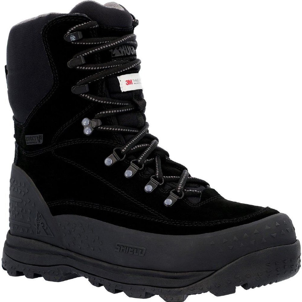 Rocky Blizzard Stalker Max Waterproof Insulated Boots feature 1400G of 3M™ Thinsulate insulation, a multi-directional rubber outsole, SHIELD guard, and foam padded collar.