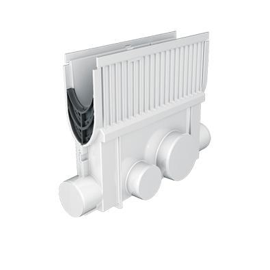 MIFAB®’s T1400-CB620 Catch Basin shall be 19.7”(500mm) long with a 4” (100mm) internal width. The catch basin 18.8” deep. It is available with a 4” or 6” outlet. A sediment bucket is included with every basin. The catch basin is made from High Strength Glass Reinforced Polyester (GRP). Each catch basin comes with either ne edge rail or galvanized edge rail. The catch basins achieve Load Class A-E depending on the grate utilized.
