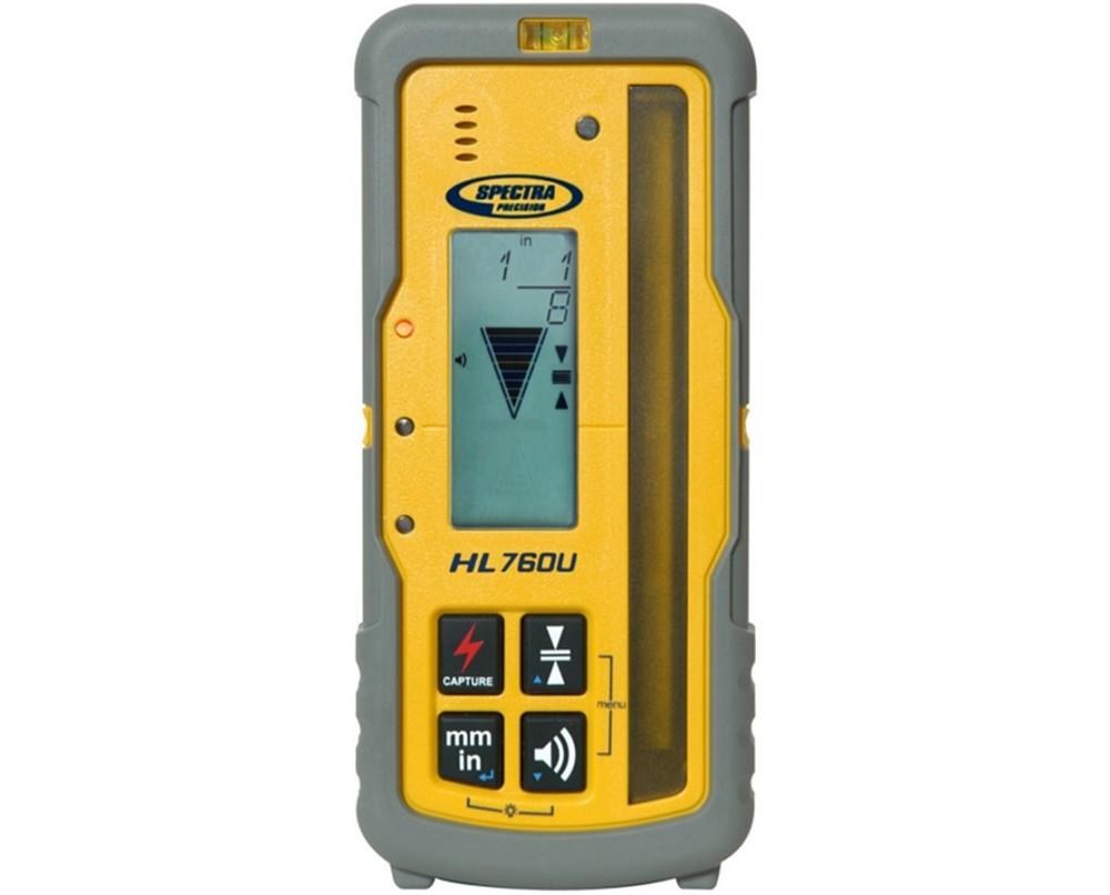 Featuring a digital readout of elevation and fingerprint functionality, the Spectra Universal HL760U Digital Readout Receiver provides fast grade checking and accurate laser readings. It has a working radius of up to 1,500 feet and includes all the functions of the HL750 with the addition of grade matching and PlaneLok capabilities that reduce connection errors and conflicts on the job site. It differs from the HL760 in that it is compatible with red and green beam rotating lasers.
