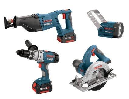 BOSCH TOOL CORPORATION KIT ,HAMMER DRILL DRIVER(#17618) -1/2" , CIRCULAR SAW, RECIP SAW, FLASHLIGHT , 18 VOLT, 2 FAT LI-ION BATTERY, CARRY BAG