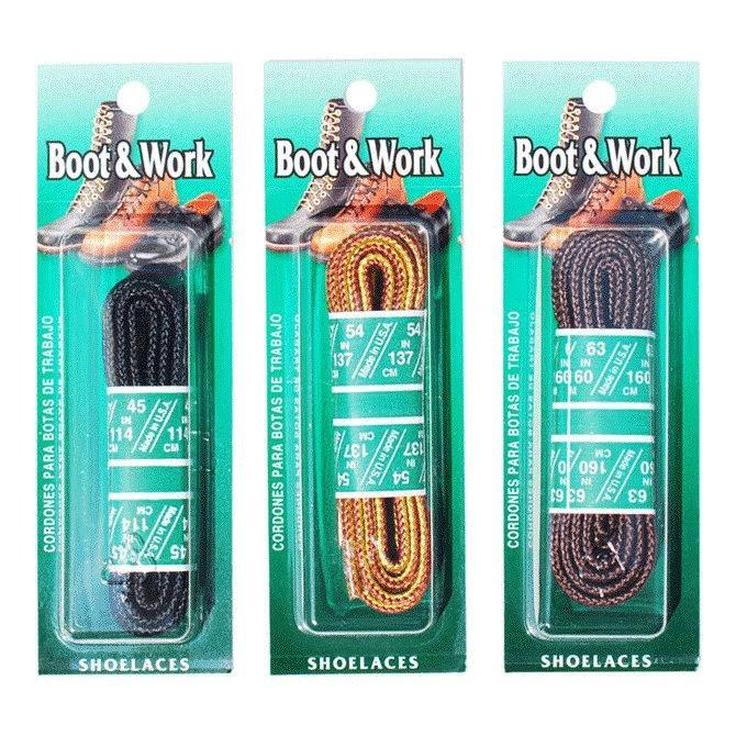 Nylon boot lace for hiking boots and boat shoes, in individually packaged blister packs.