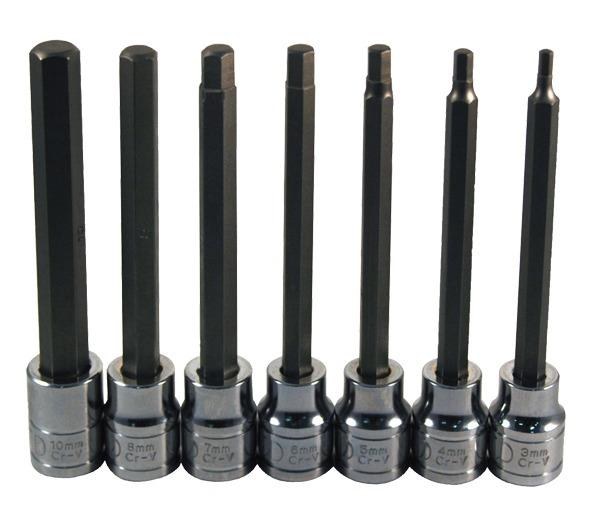 Set Includes: (7) Extra Long Metric Hex Bit Sockets: